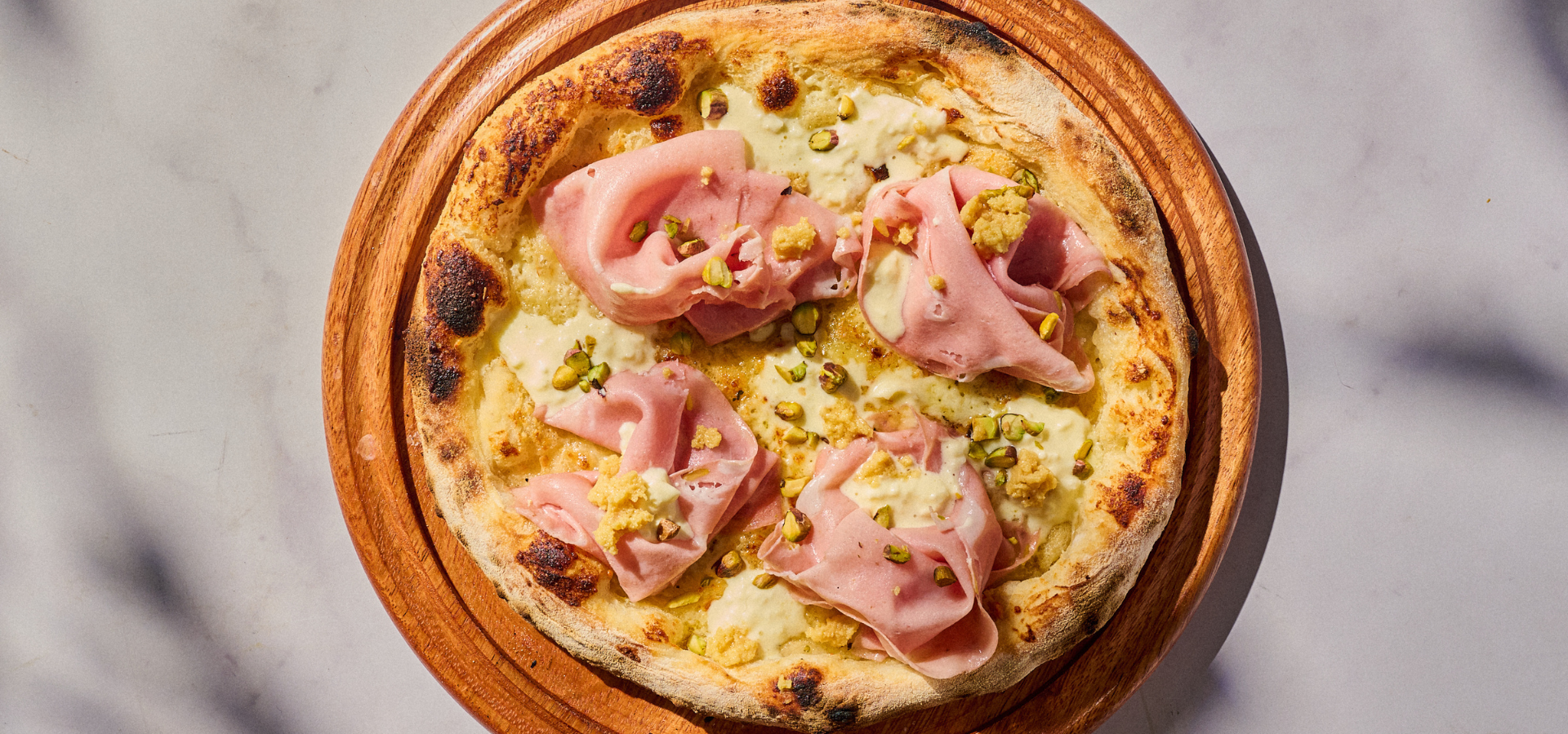 Nem só de bufê vive o restaurante Ráscal: entre as opções à la carte há uma interessante oferta de pizzas, feitas com molho de tomate fresco, assadas no forno a lenha e disponíveis tanto no almoço quanto no jantar. A portuguesa da casa (R$ 82 em tamanho broto ou R$ 125 em tamanho família) combina molho, muçarela, ovo, presunto fatiado, cebola roxa temperada com pimenta dedo-de-moça, alecrim, salsinha, azeitona preta e orégano. Já na ala de sabores especiais, a mortadela italiana (R$ 94 a broto e R$ 139 a versão família) leva molho alfredo, muçarela, orégano, mortadela italiana, stracciatella, pesto cítrico e pistache.