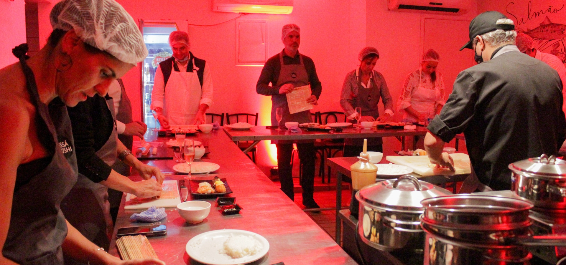 Que tal promover a confraternização da equipe numa aula de culinária japonesa na cozinha experimental do Sassá Sushi? Na experiência imersiva (a partir de R$ 500 por pessoa), voltada para grupos de até 14 pessoas, cada aluno prepara as nove etapas do menu, que será degustado na ocasião. E quem ensina o passo a passo de pedidas como o niguiri de vieira e o baterá de haddock defumado é o chef Alexandre Saber – o mestre Sassá, para os mais chegados. Cada etapa pode, ainda, ser harmonizada com vinhos, espumantes ou drinques. Mais informações do site do restaurante: https://www.sassasushi.com.br/eventos-corporativos