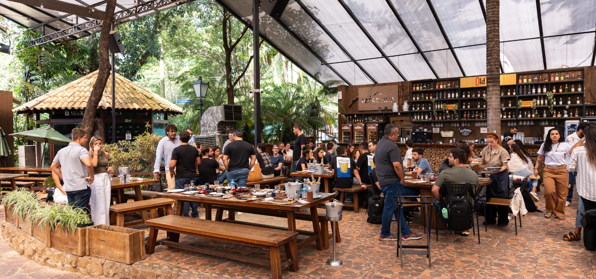 No coração do Brooklin, esse bar de alma sulista tem diferentes soluções para quem busca um lugar para celebrar com a equipe no final do ano. Com três horas de duração, os pacotes custam a partir de R$ 280 por pessoa e incluem beliscos na chegada, petiscos, com direito a varal de frios, canapés, torresmo, caldinho de feijão, entre outros comes, e seleção de caipirinhas. Quem preferir pode, ainda, customizar a experiência com pratos para almoço ou jantar por valores extras. Reservas podem ser feitas pelo Whatsapp (11-98773-0079).
