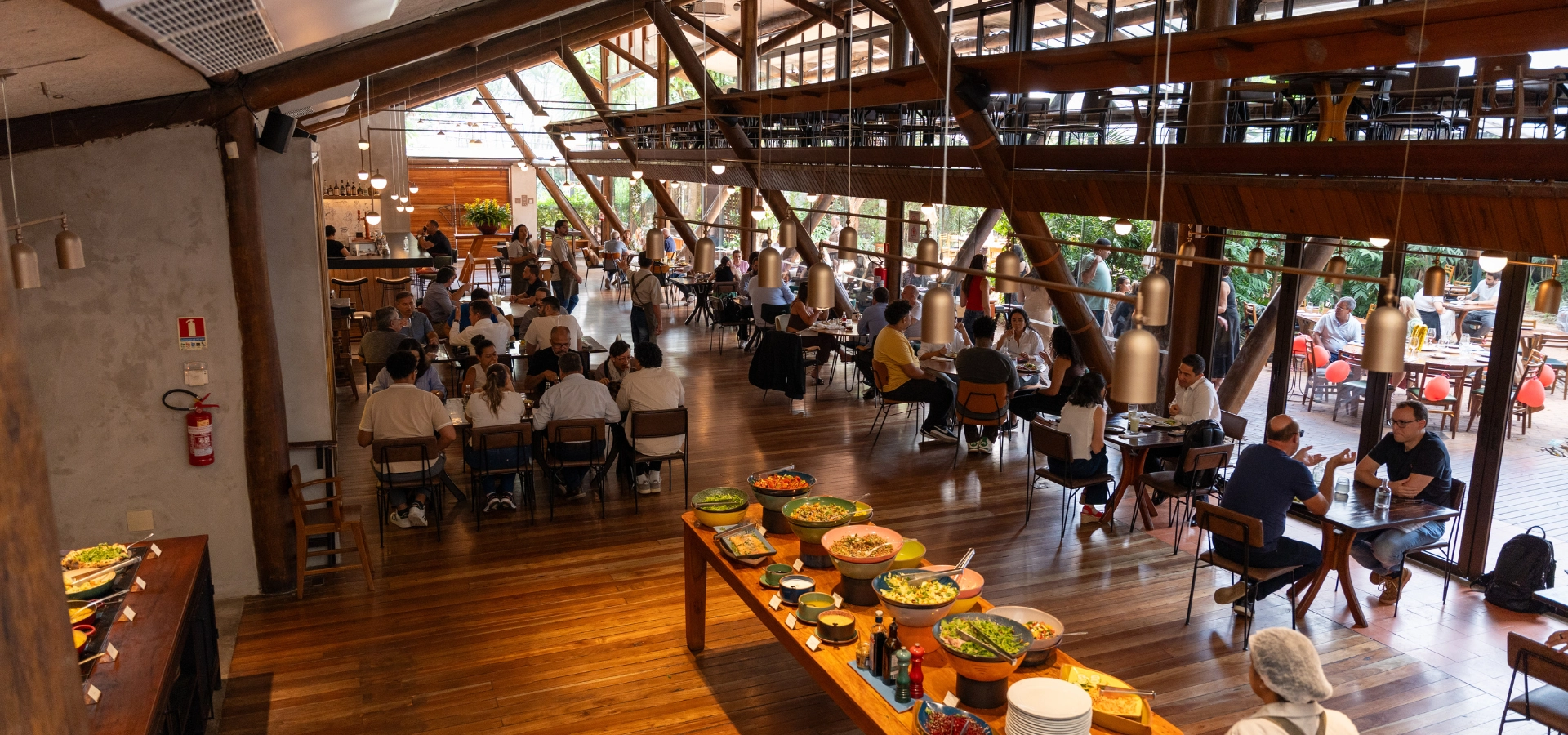 Uma casa que se orgulha de ser worker friendly, ostentando sua internet por satélite, suas tomadas estrategicamente localizadas e, claro, seu café de qualidade, não ia fechar as portas para uma festa (matinal ainda!) da firma, né?! Pois aqui, dá para reservar o salão interno para até 30 pessoas, o jardim, na área externa, para até 20 pessoas, e o mezanino até 12 pessoas. Também é possível reservar todo o espaço para grupos a partir de 30 a 95 pessoas. O cardápio pode ser aberto, com as opções corriqueiras da casa – destaque para a tartine integral com creme de avocado, tomate assado, bacon crocante, ovo perfeito e folhas de agrião (R$ 40) e para o sanduíche de rosbife com aïoli, óleo de cebolinha e salsa criola no croissant (R$ 55) – ou fechado (a partir de R$ 2.373, no mezanino, para 12 pessoas).