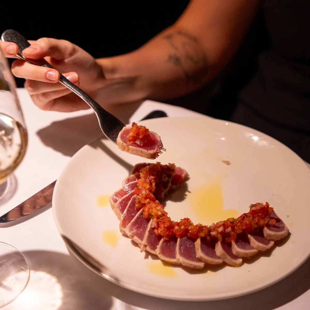 Se não conseguir resistir às massas, o la carbonara (R$ 88) segue a receita tradicional italiana, com spaghetti envolvido em gemas de ovos e queijo pecorino, finalizado com guanciale e pimenta-do-reino, montado à mesa pelo garçom, que chega com a panela em mãos. E o clássico tagliatelle alla bolognese (R$ 101) é saborosa pedida entre as massas frescas da casa. Mas quer continuar pegando leve? O tonno scottato (R$ 96) vem com filé de atum levemente selado com vinagrete à italiana, e pode ser acompanhado de legumes, minissalada verde ou rúcula, batata bolinha ou fritas. Já as sobremesas não são fixas – pergunte ao garçom qual é a pedida do dia e dê sorte de encontrar o bolo Cipriani (R$ 58), feito com pão-de-ló recheado de creme de baunilha e merengue tostado.