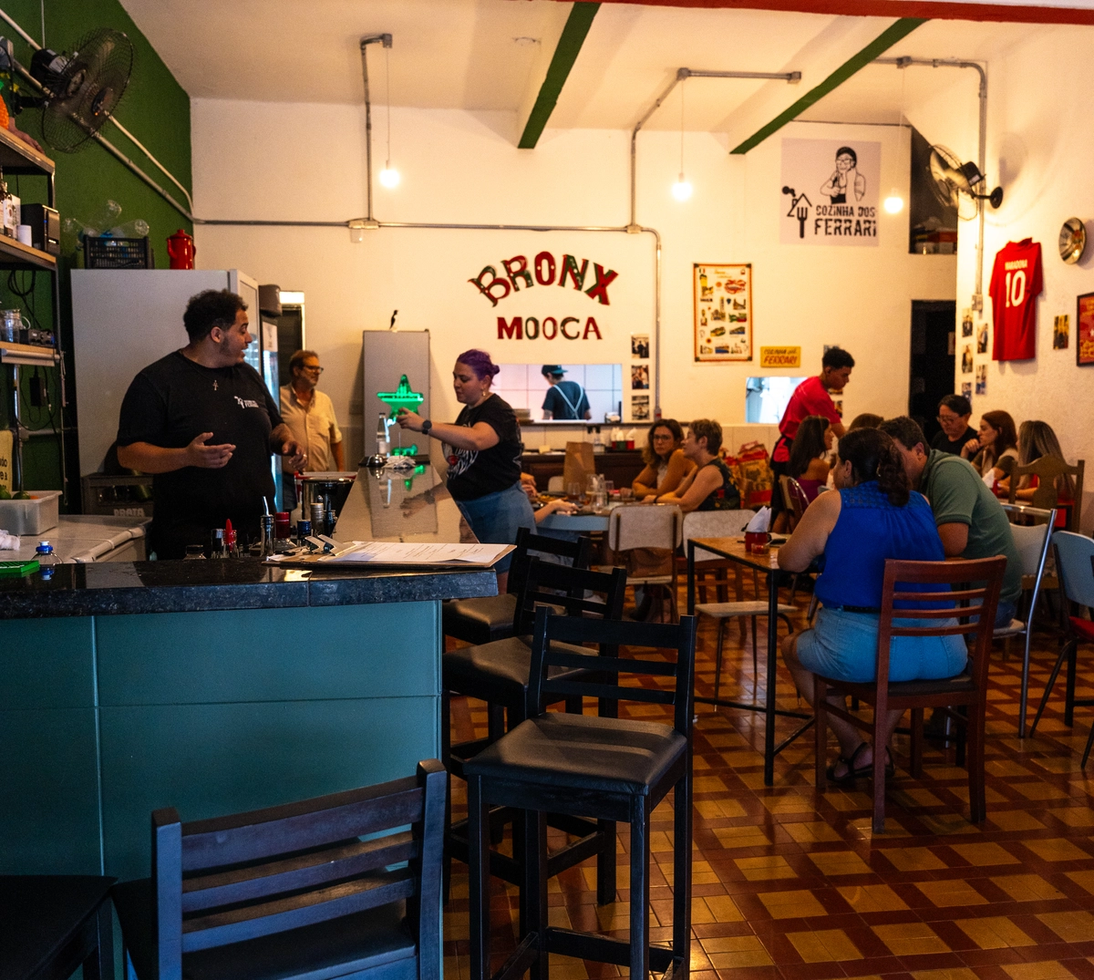 No bairro conhecido pela presença italiana, a Cozinha dos Ferrari faz uma boa mescla entre os sabores tradicionais do país europeu e ingredientes brasileiros, em uma pegada contemporânea. E a fórmula tem funcionado: difícil de achar mesas vazias. Por isso, antes de mais nada, programe-se para chegar cedo e lembre-se de que lá só funciona de quinta a domingo. Outra dica importante: por mais que o salão tenha ganhado um puxadinho, ir numa turma grande pode não ser uma boa ideia. É mais fácil encontrar um cantinho naquela concorrida garagem para dois ou quatro do que para oito.