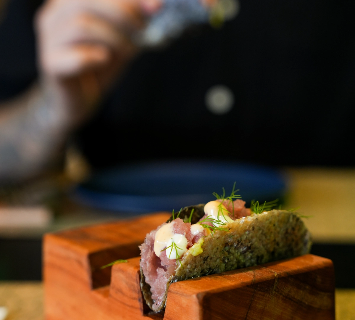 Ao fundo, a cozinha aberta para o salão diz logo de cara, por meio de um letreiro luminoso, que não tem amarras: “Não temos rótulos, temos apenas comida!”. Assim, o cardápio vai de taco de pele de salmão com atum e guacamole (R$ 38) a lasagna bolognese (R$ 70), sem nenhum preconceito. E se a variedade de pratos não conquistar seu paladar, dê uma olhada nas opções de pizzas individuais, feitas com farinha italiana 00 e longa fermentação. A carbonara, com muçarela de búfala, bacon, ovos, parmesão e pimenta-do-reino, sai por R$ 68. Já margherita especial, com molho de tomate, muçarela de búfala e pesto, custa R$ 60.