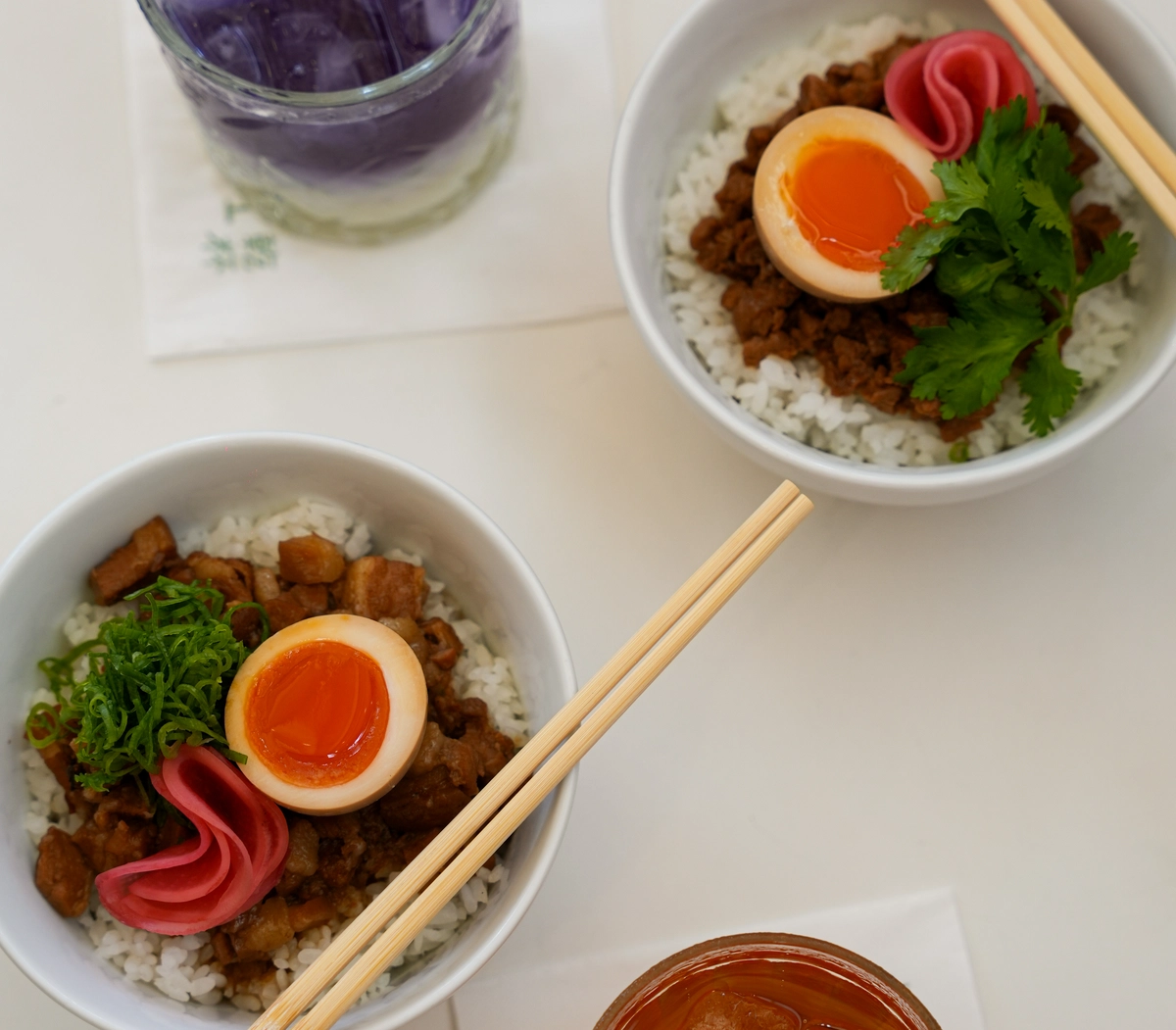 Quem preferir uma opção mais reforçada pode apostar no lu rou fan (R$ 36), que é um bowl de arroz “grudadinho” com panceta, ovo cozido e marinado, picles de rabanete e cebolinha. É vegetariano ou vegano? O su rou fan (R$ 35) junta arroz, proteína de soja, conserva, coentro e pode ser pedido com ou sem ovo.