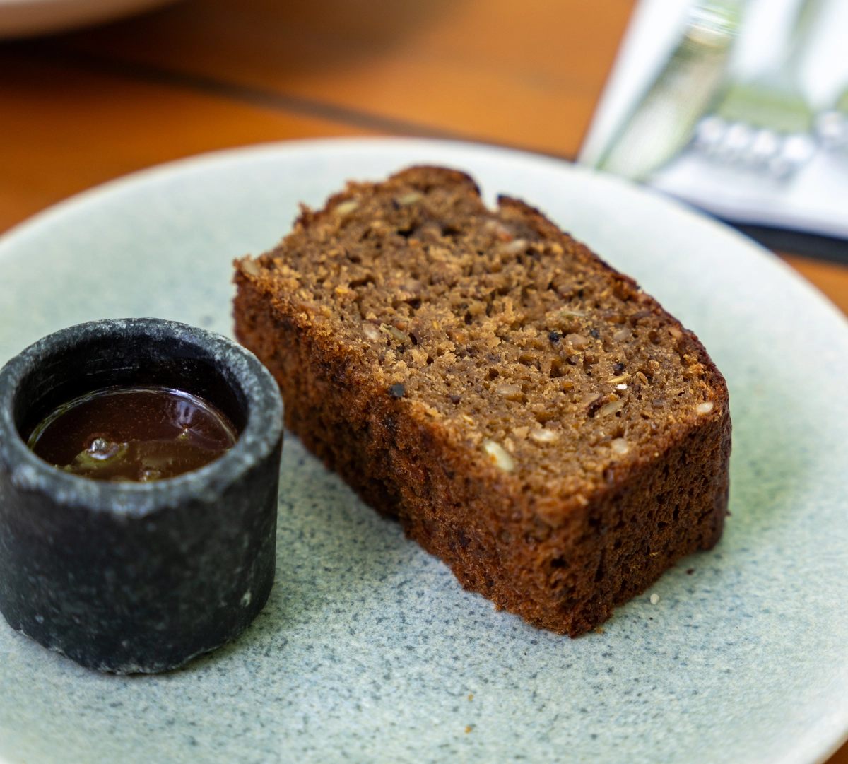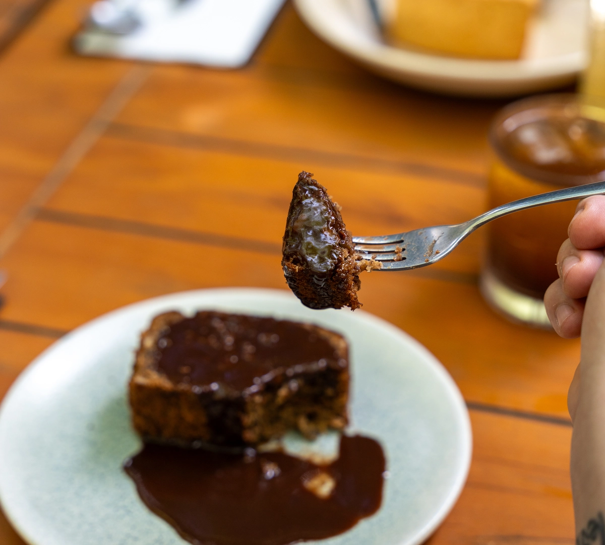 A salada braúna (R$ 42), boa para quem busca um almoço leve, é feita com mix de folhas, tomate-cereja, amêndoas, queijo de cabra e molho pesto. Quem quiser pode reforçar o pedido com frango, por mais R$ 8. Já o caldo verde de macaxeira (R$ 42), com couve cortada fininha e calabresa, é alternativa para dias mais frios.