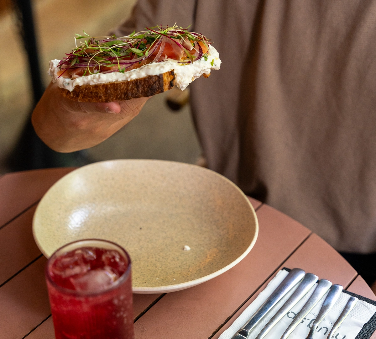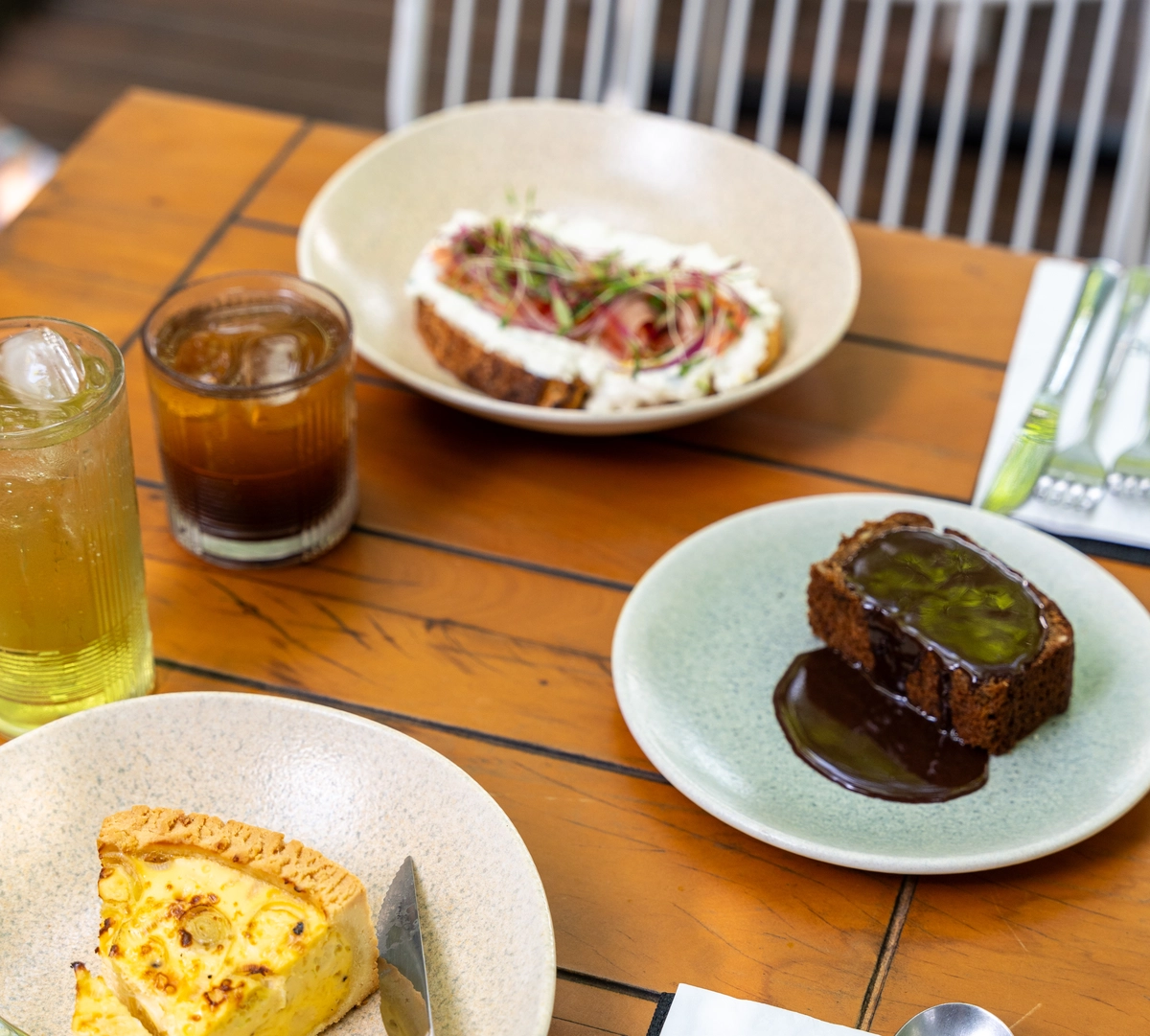 Extenso, o cardápio oferece opções caprichadas de café da manhã e brunch, que são o carro-chefe da casa, mas há também opções de saladas, pratos, caldos e sanduíches para um almoço rápido, além de comidinhas para o café da tarde.