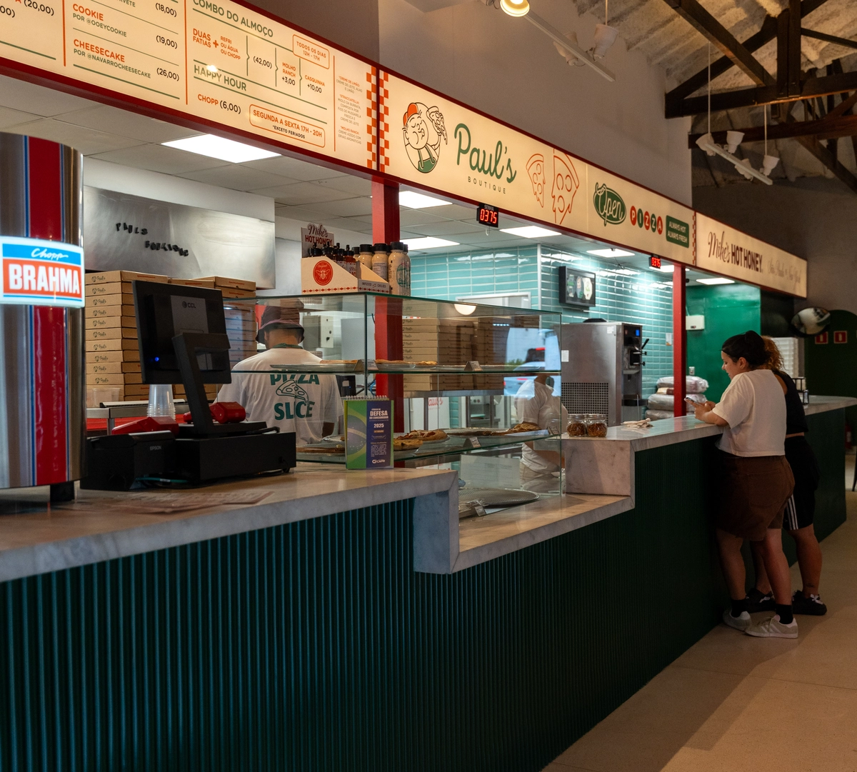 No estilo nova-iorquino, as pizzas (que são maiores, mais fininhas e crocantes que as tradicionais paulistanas) ficam expostas já prontas na vitrine. Peça as suas fatias no balcão ou nos totens de autoatendimento, pague e espere até que sejam aquecidas. Daí é só procurar um lugar para se sentar no despojado salão, cujas mesas altas com banquetas acomodam toda a equipe do trabalho, mas também funcionam como mesas coletivas, para serem compartilhadas.