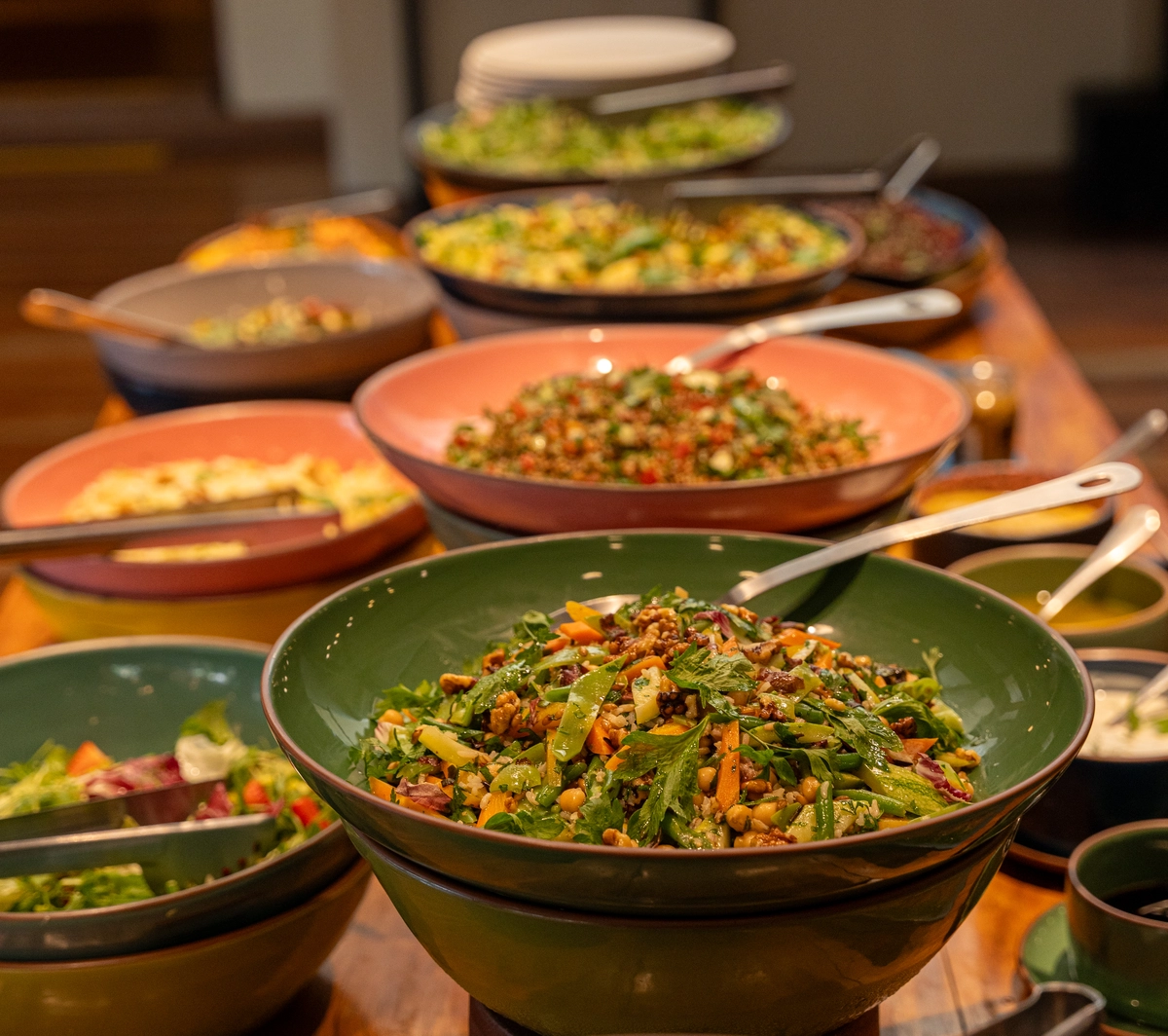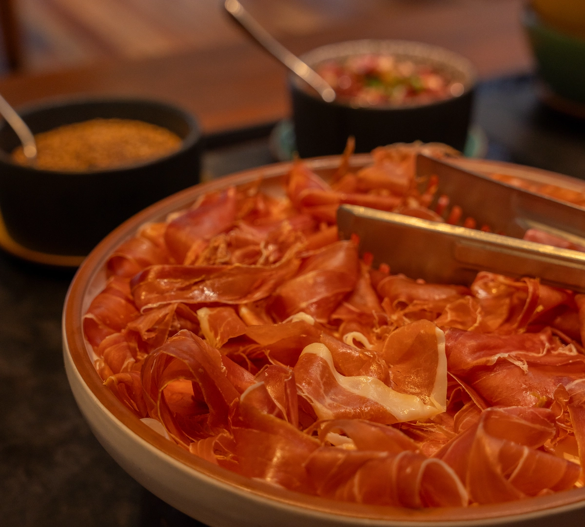 No almoço de terça a sexta, o caprichado bufê de saladas e antepastos, que inclui ingredientes preparados no forno a lenha, sai por R$ 98 – e por mais R$ 27 você pode acrescentar a proteína do dia, entre carne e peixe.