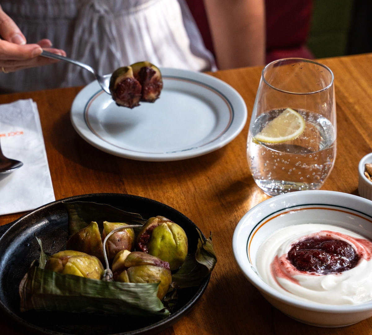 Economize apetite para não deixar passar a sobremesa. As opções (interessantíssimas), como o figo assado com azeite de lavanda, coulis de morango, creme de mascarpone e lavanda e amêndoa tostada (R$ 56, ideal para compartilhar), são assinadas pela confeiteira Brenda Freitas (do Maní).