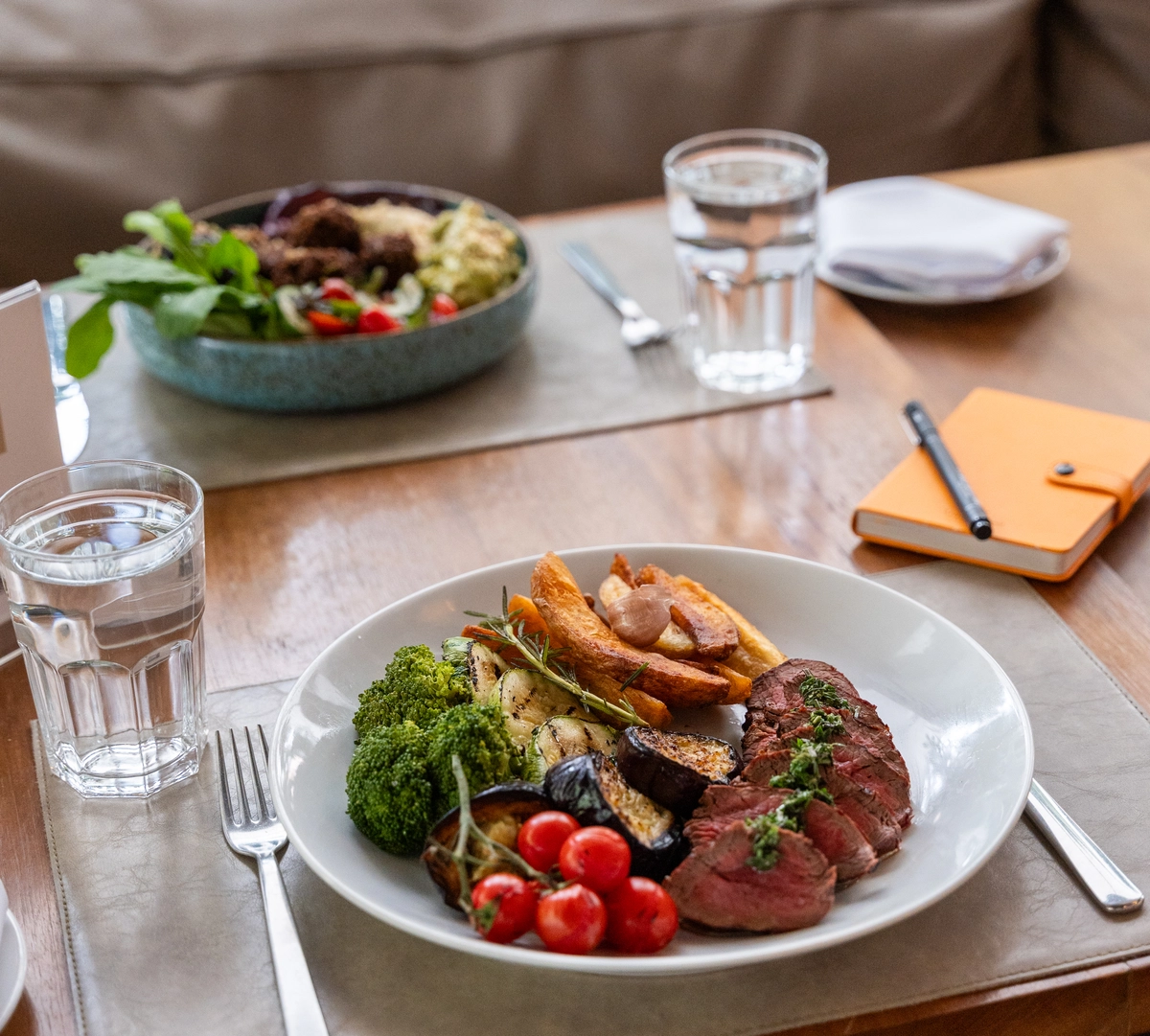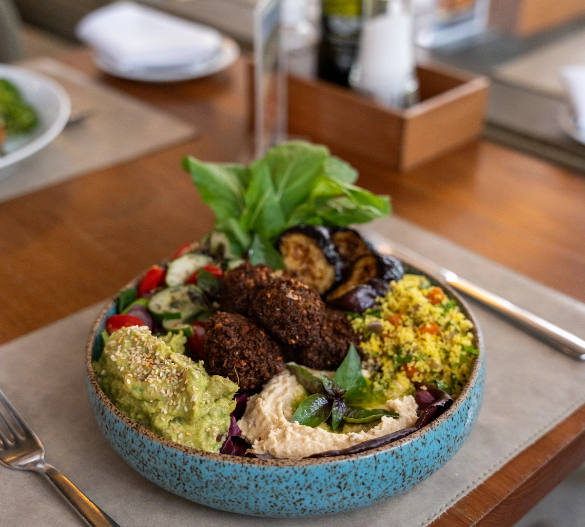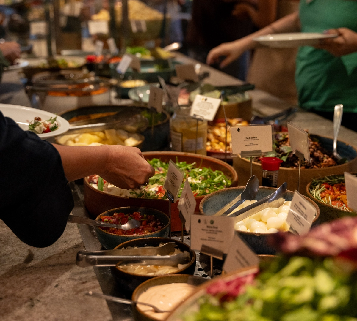 Quem preferir pode transformar seu almoço no Ráscal numa experiência à la carte. A maioria dos pratos do bufê podem ser pedidos à mesa, além das pizzas assadas no forno a lenha e dos bowls frios, como o vegano (R$ 86), com falafel, mix de folhas, cuscuz de legumes, homus, guacamole, berinjela grelhada, salada grega e molho de tahine, e quentes (R$ 109), caso do de rosbife fatiado com azeite de ervas, batata rústica com alho e alecrim, tomate e brócolis assados e berinjela e abobrinha grelhadas.