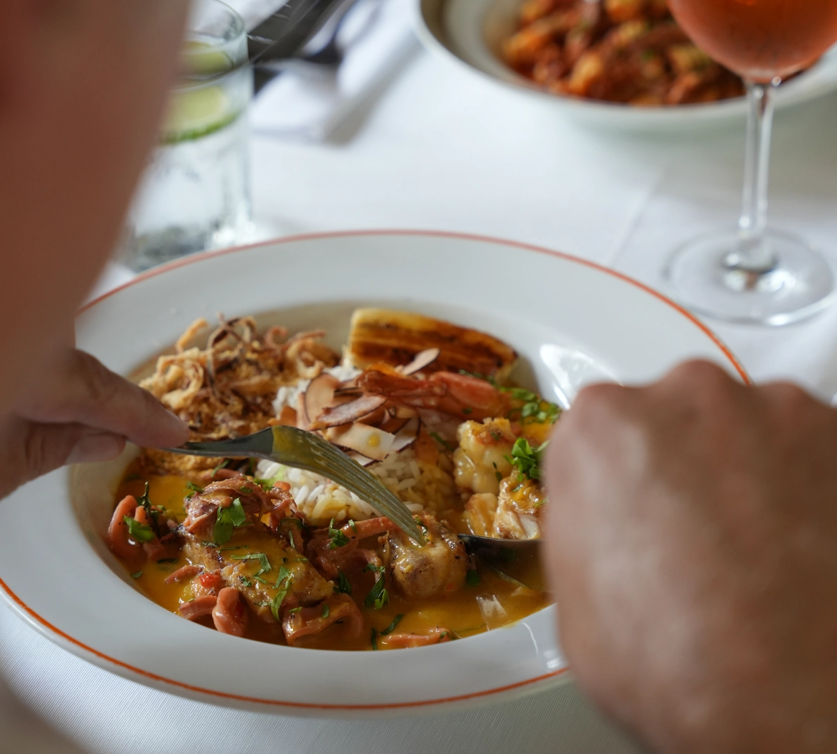 No almoço de terça a sexta-feira, há uma versão mais em conta de menu, que inclui entrada, principal e sobremesa por R$ 91. Dá para abrir os trabalhos com o rolinho thai de saladinha de ervas, broto de feijão e amendoim, seguir com o picadinho de boeuf bourguignon com purê e espinafre, e finalizar a refeição com a maçã caramelada com crumble de amêndoas e creme inglês.