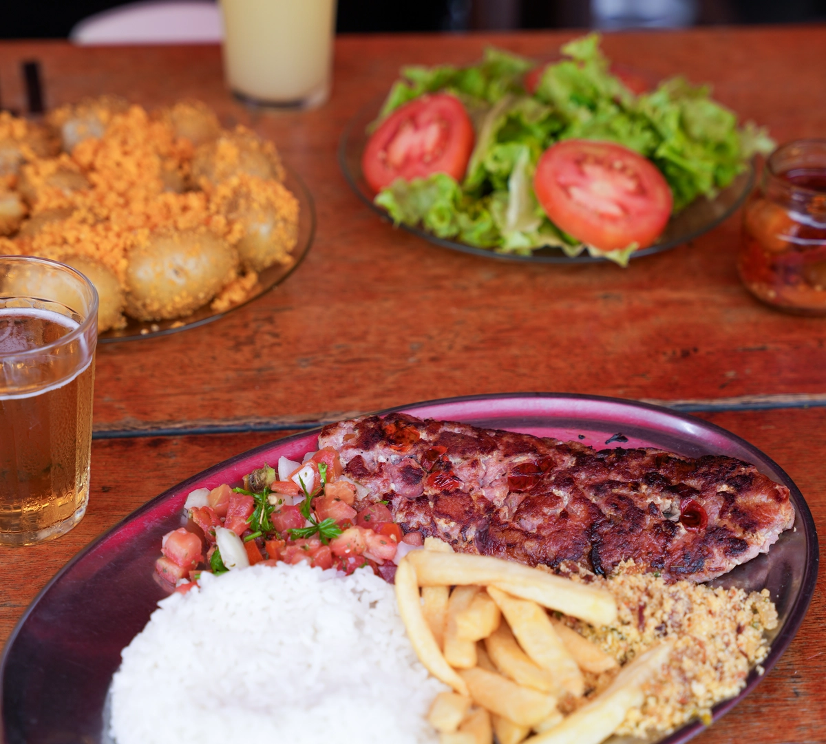 Com sorte, uma amostra da porção de batata na “serragem” (batatas bolinha com farofa e “tempero especial”, R$ 42 a porção) pousará na sua frente antes mesmo de você decidir qual o prato da vez – tudo vai depender do humor da atendente, como ela mesma faz questão dizer.