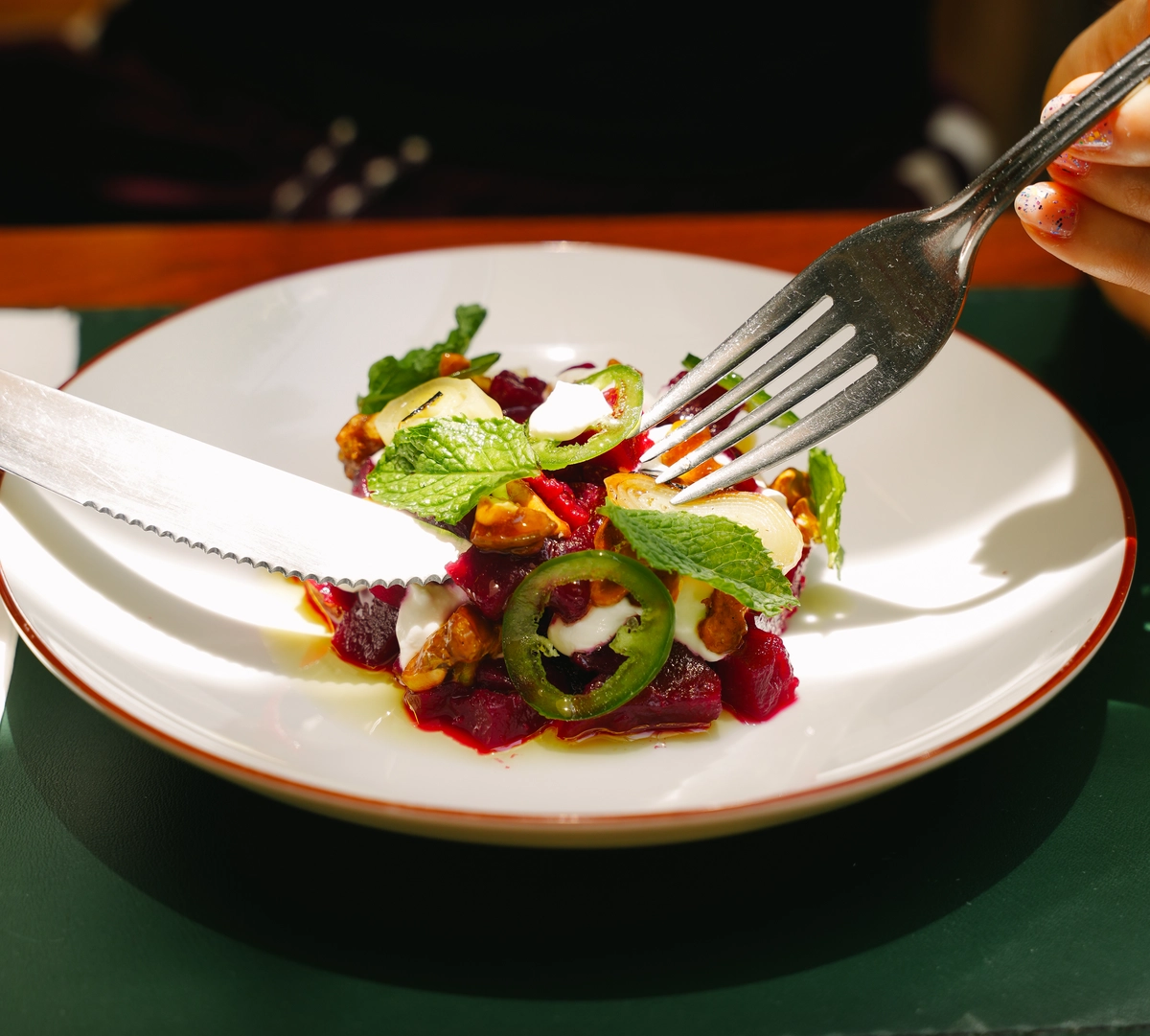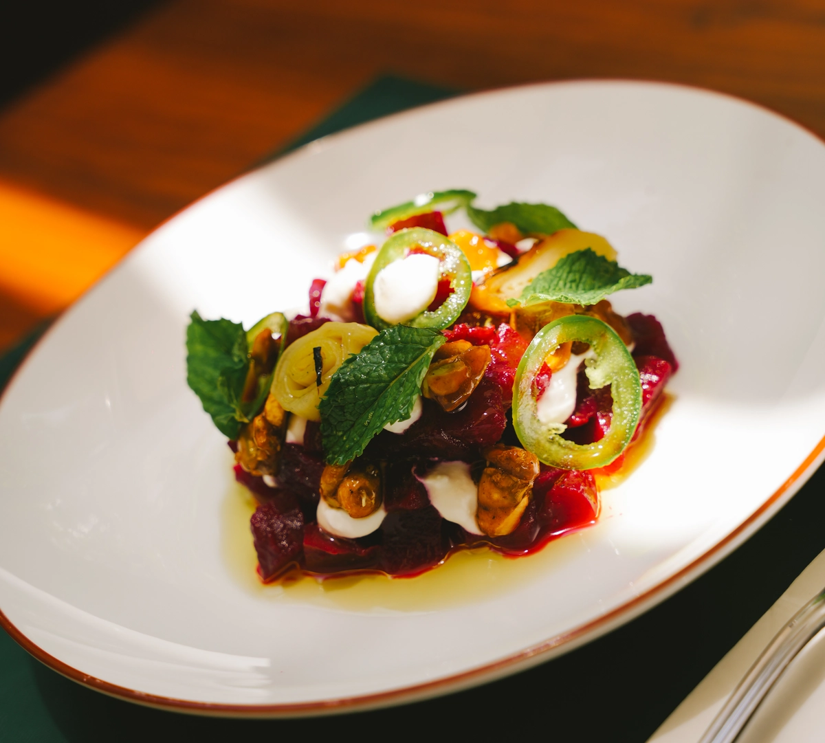 Se estiver acompanhado, peça um ou mais pratos da seção para compartilhar e coloque no centro da mesa. Tem as beterrabas tostadas com pistache caramelizado, iogurte, hortelã, jalapeño e alho-poró (R$ 36), a língua bovina com molho tonnato, avelã e salsa (R$ 32) e os bolinhos de arroz com maionese de pimenta-de-cheiro e salsão (R$ 32 com cinco unidades).