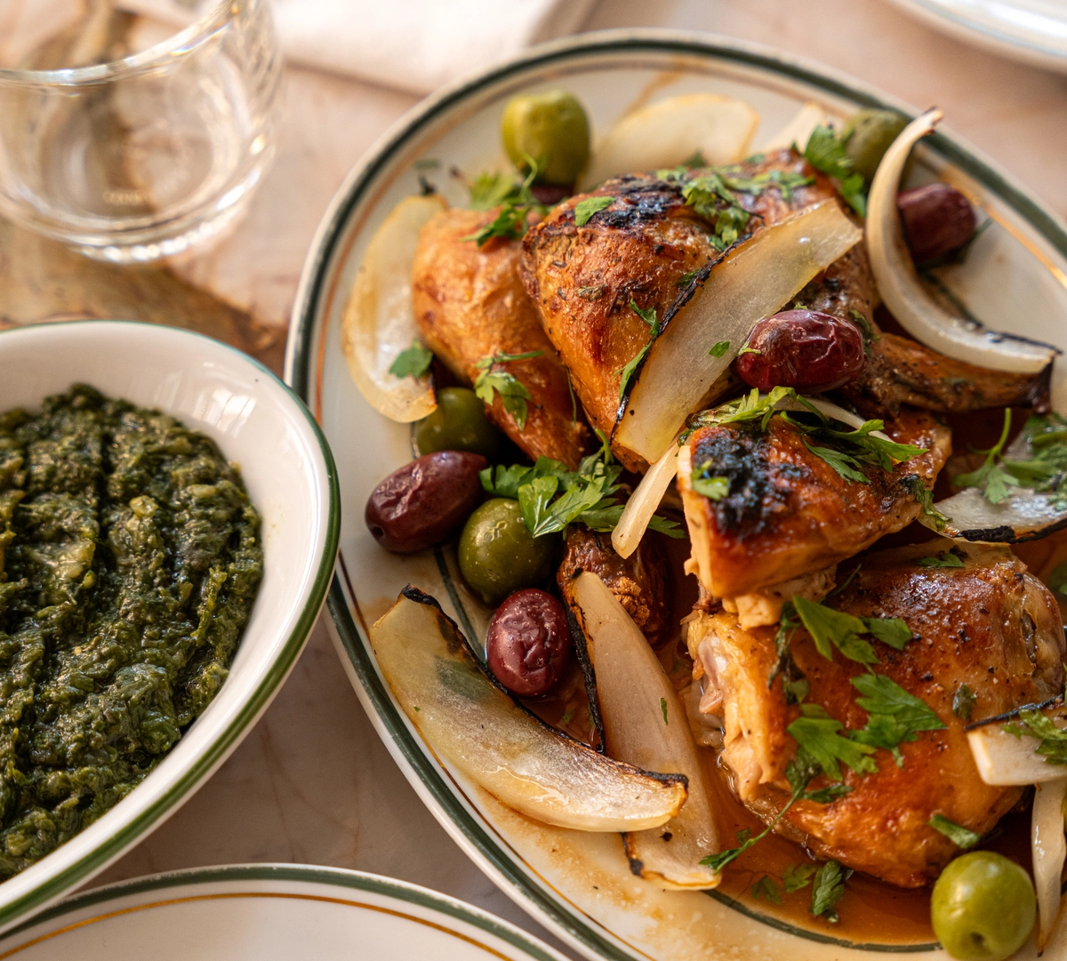 Para duas pessoas, o ½ frango assado (R$ 98) chega à mesa com vinagrete de ervas, laranjas, jus de aves e uma guarnição à escolha (salada de tomates, salada verde, fritas, purê de batatas, legumes da brasa, batatas à la creme ou espinafre à moda).